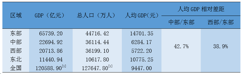 表1 东、中、西、东北四大区域基本情况(2002年)